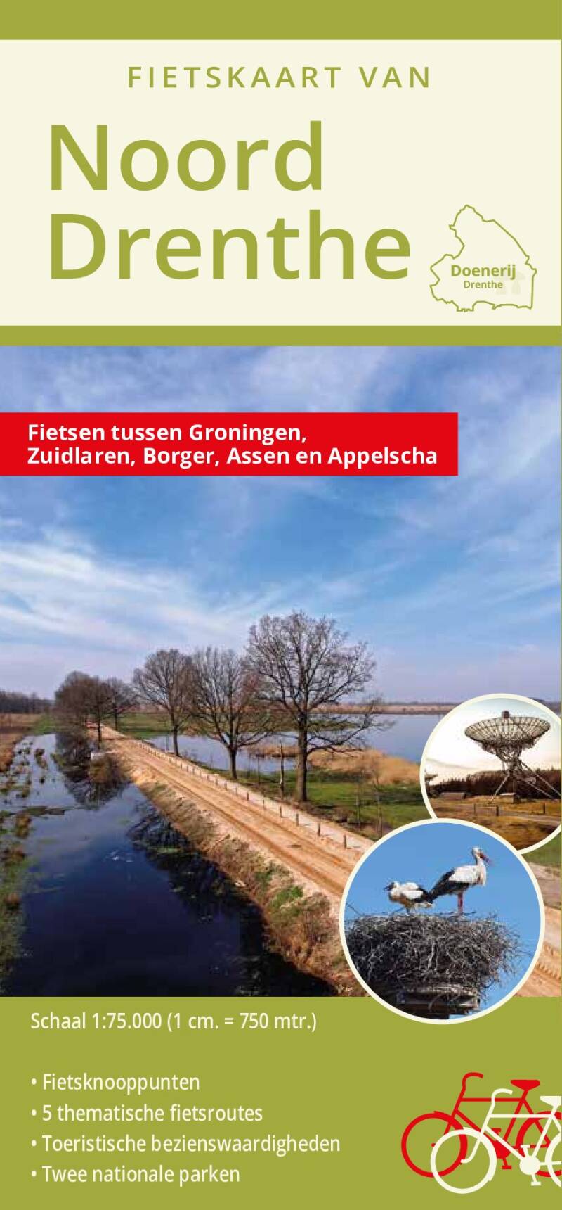 Fietskaart van Noord Drenthe (schaal 1:75.000 / 1 cm. = 750 m.)